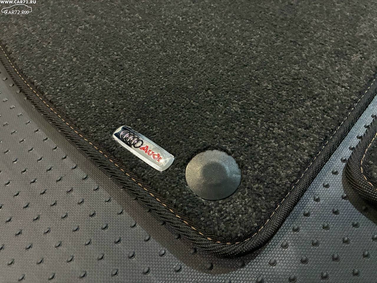 Серый (графит) ворс + чёрная окантовка + аккуратная коричневая строчка. Спокойно, строго и очень «по-аудишному».